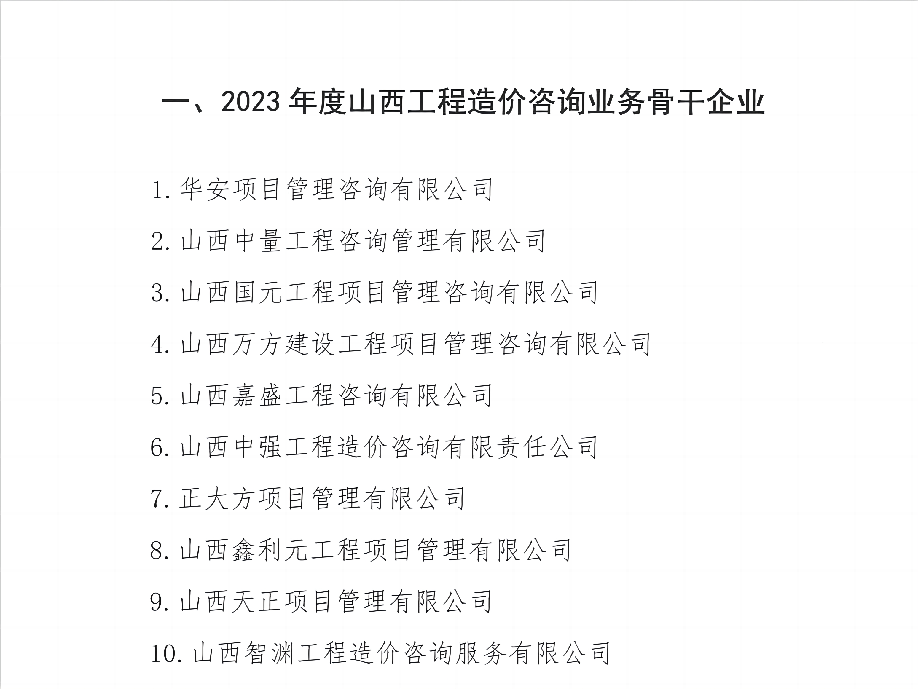 2023年,省價(jià)協(xié)開(kāi)展2023年度“山西省工程造價(jià)咨詢業(yè)務(wù)骨干企業(yè)”、“山西省工程造價(jià)咨詢應(yīng)用創(chuàng)新領(lǐng)先企業(yè)"活動(dòng),我公司積極參與申報(bào),經(jīng)省價(jià)協(xié)初審、專家評(píng)審,最終,我公司入選2023年度“山西省工程造價(jià)咨詢業(yè)務(wù)骨干企業(yè)”。